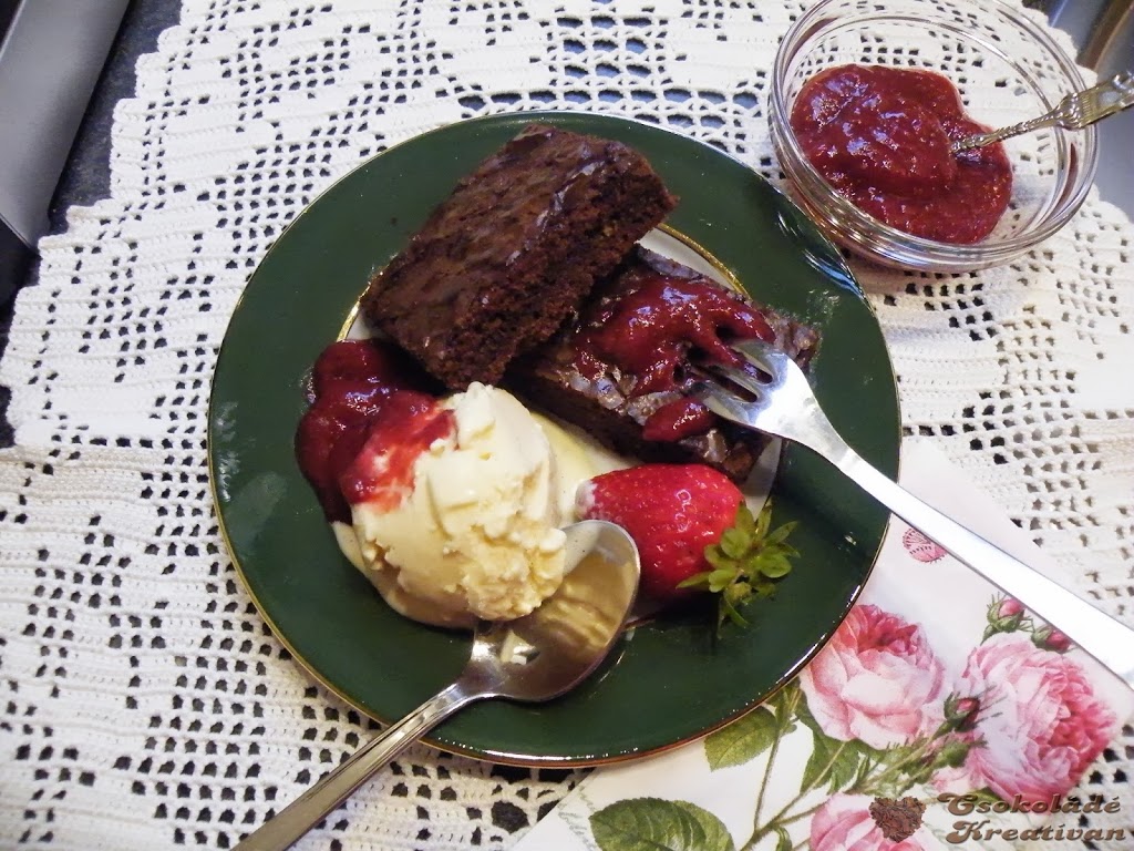 Én a recepten semmit nem változtattam. Nagyon sikeres voltam vele a családom körében. Vaníliafagyival és eper pürével tálaltam.