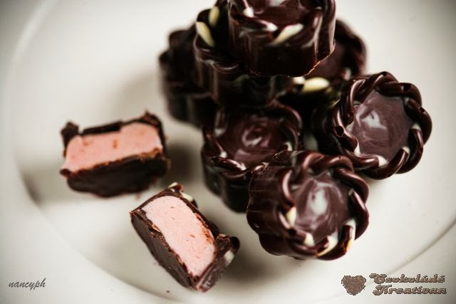 A nyáron vásároltam (itt) rózsavizet, limonádét készítettem és azzal ízesítettem (recept itt). Nagyon ízlett mindenkinek. Gondoltam, ha a citromhoz ilyen jól illik a rózsavíz, akkor a málnához sem lehet rossz. Málnapürébe kevés rózsavizet cseppentettem és ebből készítettem krémet, ezt étcsokoládé burokba tettem. Nagyon kellemes ízt kaptam. A rózsavíz nagyon harmonikusan simult bele a málna kissé fanyar ízébe és csak utóízként jelent meg, de csak annyira,hogy pikánssá tegye azt.